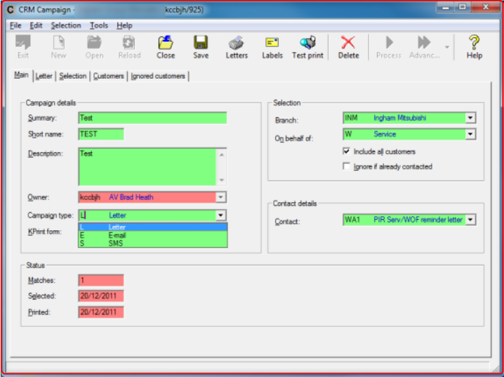 The normal selection here will be Yes. If you select No it will ensure that the appropriate costcentre lines and No Mail ticks etc don’t exist, which may cause some of your customers to be added to the Ignore Customers List, which won’t be desirable if you have already contacted this customer anyway.