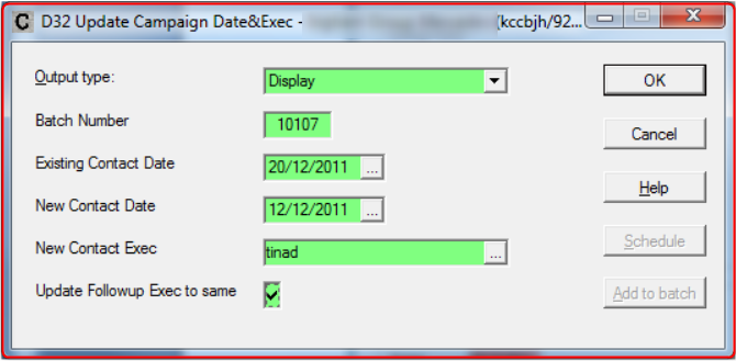 Then enter the new contact date and new executive, and whether you want the followup executive changed also.