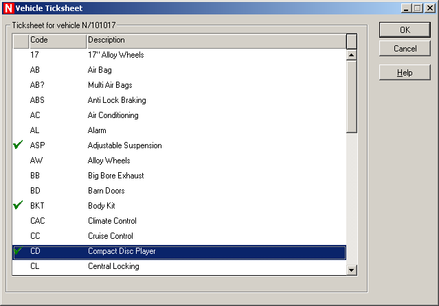 These options can be defined in Vehicle administration / Vehicle Menu / Tick Sheet.