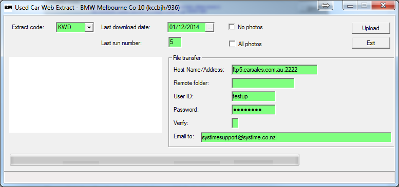 You can alter the Last download date – this is used to determine which vehicles’ photos are uploaded. Only vehicles which have been added / modified since the last download will have their photos re-uploaded.