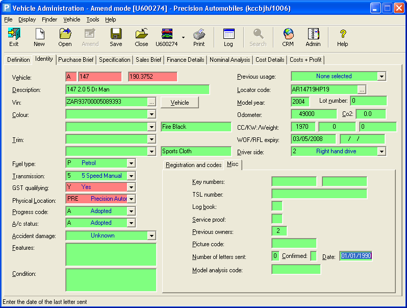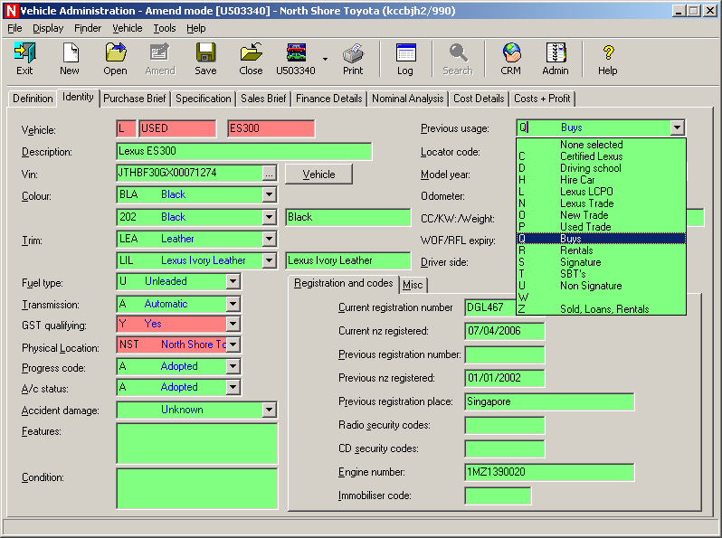 Certain Previous usage types for Used vehicles can be configured to be either included (Identity tab):