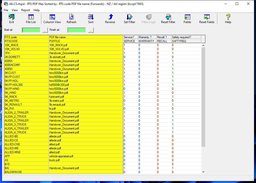 The RTS codes and the respective document to be printed is defined under the table CS>AK>rtspd.