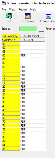 If the documents are not printing in certain companies, for the same RTS codes that are printing in other companies, you can check CS> AK > Point of Sale > System Parameters. The RTSPDFMT field should have a PDF value in it, for the document printing to be triggered.