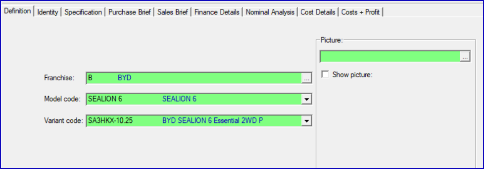 Amend the record and the variant code is now editable. Select the correct variant. Change the Progress code and A/c status back to A. Save the record. Ensure the CRM vehicle is updated to.