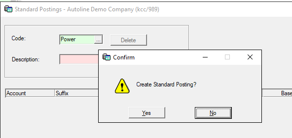 To create a Standard Posting enter a code and there will be a message - Create Standard Posting
