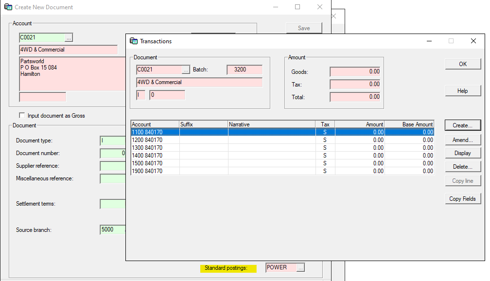 Setting up Standard Postings can be useful for regular invoices such as Power, Rent. Rates etc.