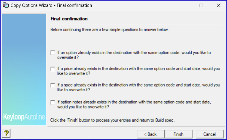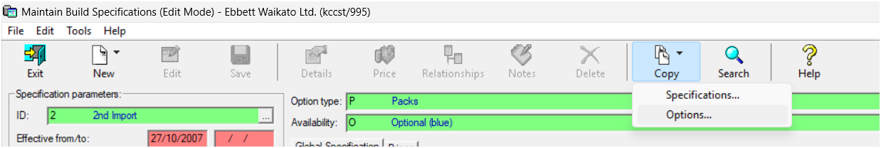 Go o DD Build Specifications. Click Copy > option
