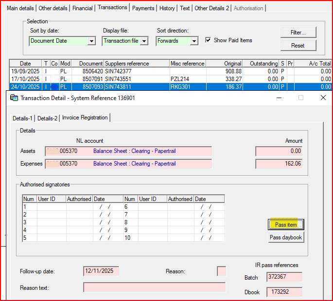 When the Invoice Register or Invoice Scanning is used the daybook that shows the "Pass" part of the posting has always shown the full batch rather than the single invoice that is being displayed.